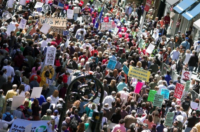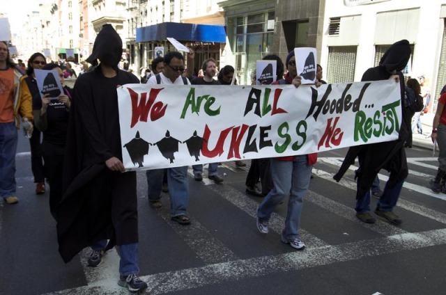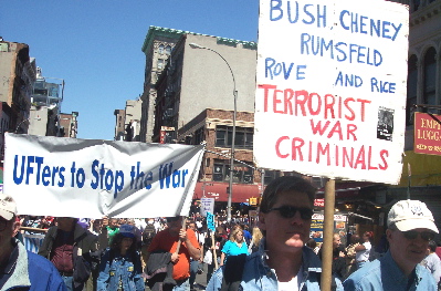 Salute to April 29 and May 1 Actions One Humanity Rising Against War and Imperialism As peoples here and worldwide prepare to take action on April 29 and May 1, what is coming to the fore is the growing resistance to U.S. imperialism. President George W. Bush, the chieftain of imperialism, is being denounced far and wide as a war criminal, to be impeached and punished for his crimes. The anger with the crimes against the Iraqi people is increasing and spreading. Everywhere, including among troops in Iraq, the demand is for immediate withdrawal of all U.S. troops. Everywhere, the internationalist spirit of the peoples can be seen in the stand that no ones sons and daughters should die for unjust wars. Together we say not one more Iraqi, not one more Iranian, not one more Afghanistani, not one more Korean, not one more American, No One! The organizing for the May Day demonstrations, in New York, Chicago and Los Angeles, Mexico City and now across Europe, is also bringing to the fore the internationalist unity of the workers in defense of rights. U.S. imperialism is responsible for the horrific impoverishment on a world scale, which forces many immigrants to leave their homelands. It is also responsible for the massive unemployment and attacks on rights inside the country. It is a system that provides profits to the monopolies and that necessarily demands that they be "competitive on the global markets." The demand to serve U.S. monopolies in their competition with rivals worldwide is a demand to support war and aggression. It is a demand to stand against the workers and peoples of other countries. We say NO! We together stand with the peoples of the world against U.S. imperialism. The plan by the ruling circles to use the issue of who is or is not documented to criminalize and divide all workers also serves the drive to war and fascism. It must be vigorously opposed. Using the process of documentation, the state claims it can decide if someone exists as a person in society or not. In this way, the state establishes the very being, or not, of an individual, using documentation. The entire process is arbitrary, with the state deciding who does and does not get documentation. The people it decides do not get documents basically do not exist as human beings with rights. The current plans all serve to put in place, using special identification requirements, the ability of the state to refuse documentation to any they decide. With complete impunity, the state can arbitrarily decide who does or does not receive documents. They are giving themselves the "right" to decide who does and does not exist as a human being, in the same way they determined slaves did not exist as human beings. This is the open fascism of the state. We say our right to be needs no documentation! The actions on May Day stand directly against this tyranny and chauvinism of the U.S. state, demanding that everyone be recognized as a human being with rights. It is a stand uniting everyone against their common enemy, U.S. imperialism. It is this united fighting force that can and is standing up to Bush and the imperialist drive to war and fascism. It is this united organized force that can and is giving rise to another world, where the rights of the peoples are guaranteed. All of these actions, here and worldwide, stand against imperialism and bring to the fore the necessity to strengthen the fight for the rights of all and in so doing strengthen our stand against imperialism. Defend the Rights of All! [TOP] Photos - New York City - April 29, 2006