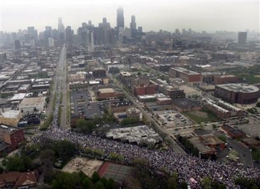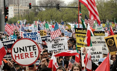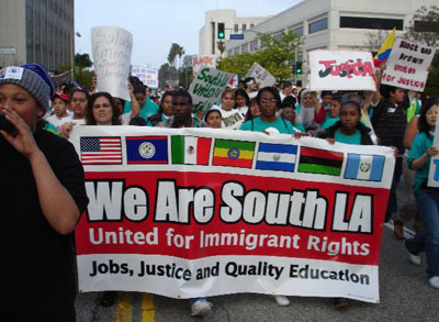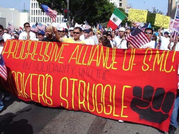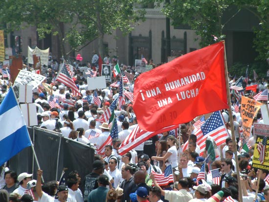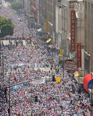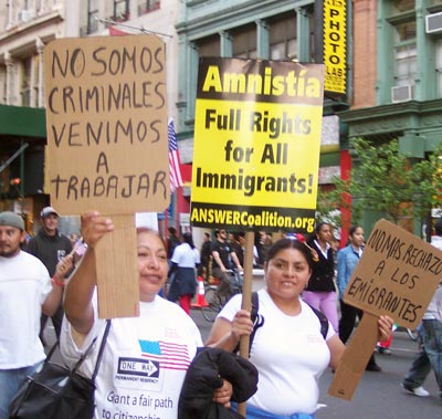 “A Day Without an Immigrant” May Day Actions Workers in Their Millions March for Rights Across the United States workers in their millions took center stage on May Day, united as one and fighting for rights. A powerful internationalist spirit was felt in these massive actions, in Los Angeles, Chicago, New York City and another 60 cities nationwide. Workers of many nationalities, from many sectors of the economy, many new immigrants, many old ones, whole families, contingents of high school youth, all stood together to say We Have Rights As Human Begins! No One Is Illegal! Reports from participants in all the marches emphasized the united and brotherly spirit that marked all the actions. With great warmth and joy workers of the many nationalities saluted each other, marched together and felt their strength as a powerful force for change. Efforts by the ruling circles to split the workers, along racial lines, based on documentation, or whether foreign or native born — all were rejected. Millions together marched with great dignity and pride as workers. Many signs brought out that it is the workers who have built the country. It is the workers who are coming forward to make their claims on the wealth they have produced and to have their say in the kind of society they live in. While the ruling circles no doubt thought they could stir up divisions and strife among the workers, these actions brought out that instead, a giant has awakened. Workers are taking their stand united against the government, against attacks on their rights and for the rights of all. Los Angeles saw the largest demonstration, filled with a determined spirit. The demand for General Amnesty was widespread, showing that the workers do not accept the government plans to document some while criminalizing others. The action was largely immigrants of Mexican origin, and had many cultural expressions of the peoples, such as bands, drumming and more. Chicago and New York also had hundreds of thousands in the streets. These actions had large contingents from many nationalities including those of African, Irish, Polish, Palestinian, Haitian, Chinese, Korean, and Filipino descent. Puerto Ricans also joined in large numbers. Whatever the nationality, the feel was that of the working class, standing proud. It was no accident that these actions were called for May Day and the spirit was true to the internationalism of workers everywhere—united against war and reaction and standing for all of humanity. Los Angeles