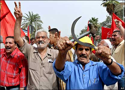 [TOP] New York City 350,000 March for Peace, Justice and Democracy The streets of New York City echoed today with the chants, songs and shouts of at least 350,000 people from across the United States. Mobilized around the calls to end the war in Iraq, to say no to any attack on Iran, and to support the rights and dignity of all people, including immigrants and women, the marchers brought a renewed urgency to the clear demand for change. The march featured the largest antiwar labor contingent in U.S. history. (See photos from the April 29 action) Initiated by an historic alliance linking a diverse coalition of national organizations -- United for Peace and Justice, Rainbow/PUSH Coalition, the National Organization for Women, Friends of the Earth, Climate Crisis Coalition, U.S. Labor Against the War, Veterans for Peace, National Youth and Student Peace Coalition, People's Hurricane Relief Fund -- the March for Peace, Justice and Democracy embodied the understanding that all those working for such goals must come together to right the reckless, dangerous, and wrong-headed direction the U.S. government has been following. The march kicked off at noon on a sunny Saturday in Manhattan. The lead contingent included Oscar winning actors Susan Sarandon and Mercedes Ruehl; Oscar-winning film director Jonathan Demme; writer/actor Malachy McCourt; NYC Transport Workers Union leader Roger Toussaint; Air America host Randi Rhodes; Michael Berg, whose son was the first U.S. civilian hostage killed in Iraq; Reverend Jesse Jackson; Reverend Al Sharpton; Gold Star mother Cindy Sheehan; Faiza Al-Araji, a peace and women's rights advocate from Iraq; John Wilhem, president of UNITE/HERE; National Organization for Women President Kim Gandy; and Anne Wright, the first State Department diplomat to resign protesting the Iraq War. At the march's conclusion in Foley Square, a vibrant sea of flags, banners and signs welcomed marchers to the "Peace and Justice Festival." Issue tents featured speakers, literature, t-shirt sales, food and music highlighting the key issues of the wide-ranging March coalition: the war in Iraq and threats of war and U.S. nuclear attacks on Iran, a Palestine tent featuring Q&A on Israel/Palestine and folkloric dance in an Arab-style "café," counter-recruitment campaigners, a Labor tent featuring the NYC Labor Chorus, and others. A special Children's Peace Tent featured puppet making and peace crane art projects, "Putt for Peace" and other games, face painting, musicians and jugglers. Films, music, performances by the Raging Grannies and many other activities were featured as well. According to Leslie Cogan, national coordinator of the 1,500-organization strong United for Peace and Justice Coalition, "An unprecedented range of organizations, committed to varied constituencies and a wide range of priorities, came together to march today. We all recognize that until we end this lethal war in Iraq -- a war that is destroying so many lives in Iraq and here, and costing so many billions of dollars so desperately needed for rebuilding lives, cities and countries -- that we cannot succeed at reclaiming our democracy." [TOP] U.S. is Nuclear Threat Hands Off Iran! President George W. Bush continues to make threats against Iran, using Iran's legitimate nuclear program as justification. The facts are, Iran has met the requirements of the Nuclear Non-Proliferation Treaty (NPT) and the International Atomic Energy Agency (IAEA) has again confirmed that Iran is not building nuclear weapons. Its report of April 28 says "all the nuclear material declared by Iran to the nuclear agency is accounted for. Apart from the small quantities previously reported to the Board, the Agency has found no other undeclared nuclear material in Iran." In trying to make Iran the problem, the U.S. is seeking to embroil the world in its aggression, while diverting from its own crimes against humanity. Iran, like every country, has the right to sovereignty. This means it is up to Iran to decide whether to develop and use nuclear energy and to build nuclear weapons if it decides to do so. In continuing to honor the NPT despite U.S. threats, Iran is expressing its readiness to refrain from building nuclear weapons and in favor of the establishment of a nuclear-free Middle East. The U.S. and Israel, both nuclear powers, refuse to do the same. The U.S. has systematically refused to meet the requirements of the NPT, which requires the U.S. to disarm and eliminate large quantities of its nuclear arsenal. It has also openly broken international law by threatening aggression against Iran. As well, the U.S. war plans include use of nuclear weapons as offensive weapons. It is well known that such weapons devastate civilian populations and civilian infrastructure, which are both war crimes. The starting point for nuclear disarmament is disarmament by the U.S. It is U.S. disarmament that will contribute to peace, in the Middle East and elsewhere. Charging Bush with war crimes and crimes against humanity while defending the right of Iran and all countries to sovereignty also contributes to peace. The recent anti-war action in NYC as well as those on May Day made clear the stand of the American people: No War Against Iran!