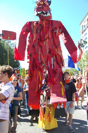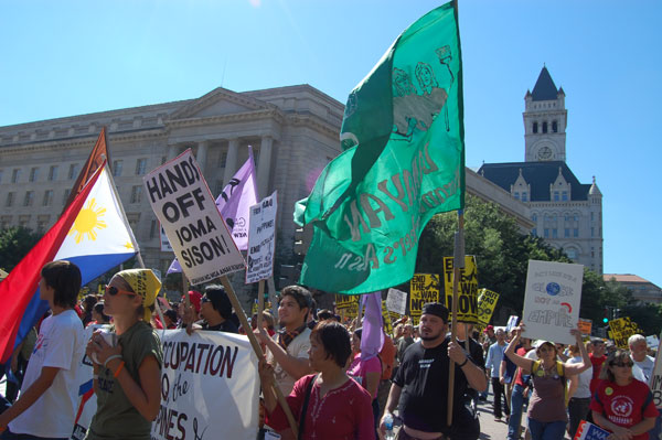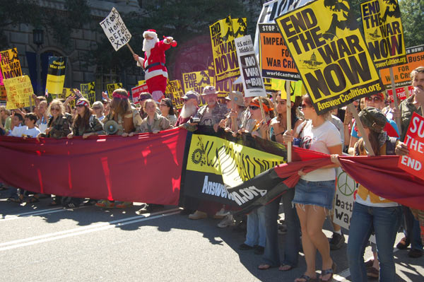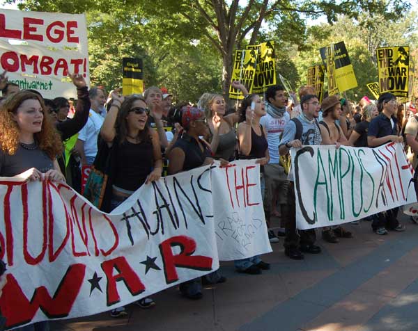 The September 15 actions began with a noon rally at the White House, where speakers addressed an enthusiastic and growing crowd eagerly gearing up to take to the streets. After the opening rally, protestors filled Pennsylvania Avenue as they marched to the Capitol building, with Iraq War Veterans leading the way. Lively contingents of youth were present, enthusiastically chanting and playing an important role in fighting for a bright future.