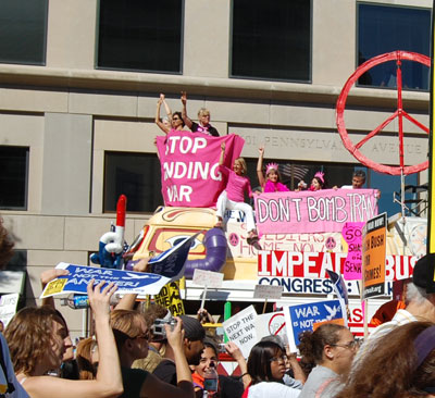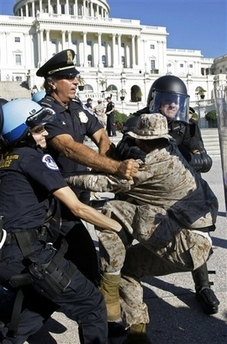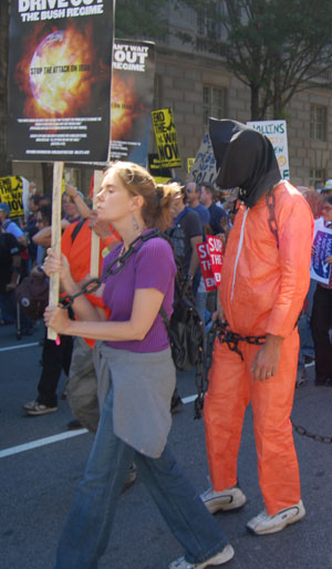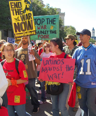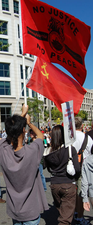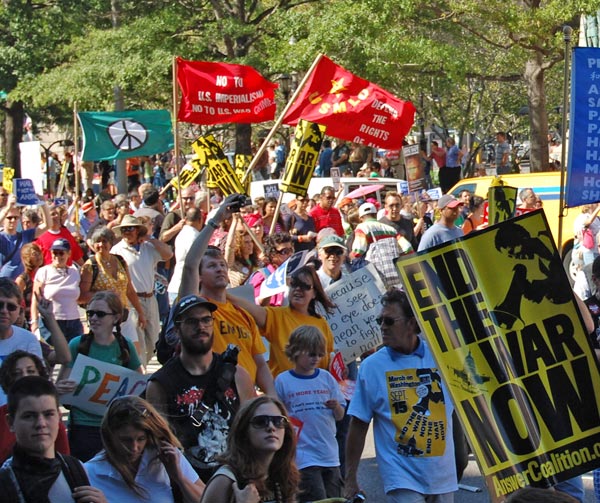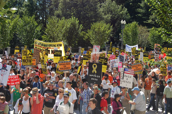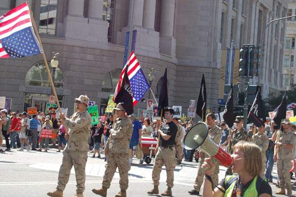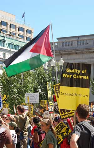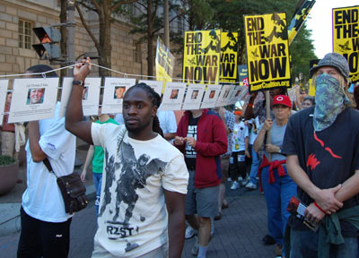 On September 15, tens of thousands of people from around the country converged on Washington, D.C. for a national rally and march to express their resistance to government war and aggression in Iraq and the world and demand that the direction of society change. Veterans, military families, and youth were in the forefront, joined by political and social justice groups, religious organizations and peace activists of all ages. African-Americans, Latinos, Arabs and other national minorities were represented showing the broad character of the anti-war movement and desire of the people to build unity.