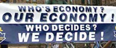 Target Private Ownership, Not Politics Monopoly Media Contributes to Hysteria One of the features of the deepening crisis is the desperation of the ruling circles as they fight to preserve themselves and their rotten system. And in their desperation, they are making every effort to disorient the people by creating hysteria and discrediting politics and politicians. This is part of their effort to immediately secure more than $1 trillion of the public treasury to save themselves. The monopoly media, far from informing the public and contributing to discussion on alternatives to the bail out, are contributing to fanning the flames of the hysteria. Instead of targeting the financiers and their private ownership, the monopoly media is targeting the public and what they call the problem of “democracy in action.” Echoeing the disinformation of the rich, the media claims the public does not understand why failure to turn over the hundreds of billions to the most powerful will also hurt the “average person.” The public in their millions broadly expressed their anger with the proposed government bail out of the rich. They understand directly that the direction of the economy, with its war funding and bail outs, is harmful to the public here and abroad. Petitions, faxes, phone calls and hundreds of actions took the stand: Defend the Rights of the People! Let Wall Street Fail and Send Them to Jail! An action on Wall Street organized by the New York City Labor Council was representative of many others across the country. Signs read, No Bail, Send ‘Em to Jail! Bailout = Bush-t. Let me get this straight: $700 billion for Wall St; $700 billion for Iraq War; No money for healthcare, schools, housing. The public is clear that the bailout is not in the interests of the public good, it is serving the narrow interests of the most powerful monopolies. The people are demanding that public dollars serve the public and that public officials serve the public, not the private monopolies. In part what is coming to the fore is the battle over just whose economy this is — the peoples’ economy or that of the rich? We say, Whose Economy? Our Economy! Who Decides? We Decide! It is precisely this spirit the rich and their media are trying to block with their hysteria. They are trying to paint the public and politics as the problem.