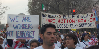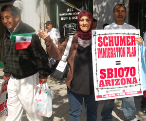 Instead, what stands out in President Obama’s first year in office is the military response to all social questions and increased militarization of society. Not only has the aggression against Iraq and Afghanistan been intensified, it has been extended to Pakistan using the brutal predator drones massacring civilians. The U.S. response to the humanitarian disaster facing the people of Haiti following the January hurricane was a military one. Military occupation and militarization of relief efforts has characterized U.S. intervention. It has sent soldiers, not the temporary housing and doctors needed. The Pentagon is also testing its “social networking” weapon, where the Pentagon registers and is in command and control of the many non-governmental organizations working in Haiti, by controlling communications and internet activity. The issue of immigration is also being used to further militarize society and accustom everyone to government impunity to profile and question people with no cause whatever. The latest proposal by Democrats, advanced mainly by New York Senator Charles Schumer, is, as he put it, stronger than the Arizona law. It calls for use of the National Guard at the border, authorizing the Secretary of Homeland Security to utilize the guard “whenever needed.” It requires local law enforcement to work with the federal government to enforce immigration law, something which is currently voluntary. This serves to increase federal command over local and state law enforcement and forge a single integrated force. It also will increase the brutal raids and deportations that are terrorizing communities and ripping families apart. Obama’s budget dedicates $1.6 billion for increasing deportations. Department of Homeland Security (DHS) reports already show that 57 percent of immigrants identified through the CAP program in FY 2009, for example, had no criminal convictions. Another recent study showed that 58 percent of immigrants handed over to ICE by local police were arrested (not necessarily convicted) for a misdemeanor, like a broken taillight, as their most serious charge. The Schumer proposal will increase this criminalization and profiling making it mandatory nationwide. It demands a “zero tolerance” for anyone without documentation. The proposal also requires a biometric identification card, issued by the federal government, and mandatory to work. All immigrants and new workers will be required to have the biometric ID within 18 months of passage of the law, and all workers will be required to have it within 5 years. The content of the Schumer proposal is to militarize life and control the workforce, increasing the ability of the government to serve the labor needs of the monopolies, while greatly regimenting the workforce. The government will decide who does and does not qualify for work, and no doubt for receiving government healthcare or welfare, for voting, and so forth. And given that Schumer is from New York, where efforts are already being made to have a “common biometric ID” for people on both sides of the border, one can predict that such a work authorization card will be expanded to include the people of Mexico and Canada. All under U.S. dictate and control. Militarization is no solution and serves to increase insecurity. It is a means for the U.S. to block efforts by the peoples to advance their fight for rights while preparing conditions for more war, potentially world war. It is vital to vigorously oppose that all efforts to militarize society and impose this militarization abroad. Defending worker and immigrant rights at home and opposing war abroad are currently at the forefront of this battle. Actions across the country and worldwide are making clear — Our Security Lies in Our Fight for Rights! [TOP] Schumer Framework Requires Biometric ID for All Workers Reject Democrats’ Immigration Proposal Serving Militarization of Society The three Senators, accompanied by Senators Dianne Feinstein of California and Richard J. Durbin of Illinois, presented the proposal just days before the massive May Day actions across the country. These actions called for immediately ending government raids and deportations and humane immigration reform based on defending the rights of immigrants and all workers. Militarization of the border and government profiling and criminalization of immigrants was denounced. President Barack Obama refuses to support these just demands of the workers. He instead has supported the Schumer plan since it was first announced back in June of 2009. Speaking on Cinco de Mayo (May 5) and on the visit by Mexico’s President Felipe Calderón May 19, he again supported Schumer’s “strong proposal.” Militarization of the Border The Schumer proposal emphasizes that before any action can be taken in relation to the rights of immigrants, the borders must be secure. The content being given to “secure” is a military one, meaning more police and more enforcement, not a human one, meaning protection of the rights and well-being of the human beings living on both sides of the border. The language of the proposal reflects this. For example, there are to be additional “Forward Border Patrol Operating Bases.” The Secretary of Homeland Security is being given “authority to deploy the National Guard to the borders when needed.” The Border Patrol in particular will receive “substantial upgrades in technology including use of Pentagon equipment and drones (Unmanned Aircraft Systems), Remote Video Surveillance Systems and Mobile Surveillance Systems,” and a large increase in “high-tech ground sensors throughout the southern border,” along with more helicopters, SUV’s and power boats. The proposal specifically calls for “substantial increases in the number of border patrol agent stations on the southern and northern borders.” This includes increased Border Patrol officers; increased Immigration and Customs Enforcement (ICE) 
