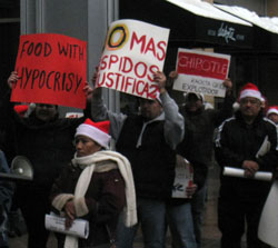 [TOP] Defend Chipotle Workers It looks like more workers will be fired in the coming weeks. Chipotle issued a statement saying, "We are fully cooperating with Immigration and Customs Enforcement (ICE) officials in Minnesota in response to a request for documents they have made. Chipotle is extremely proud of its diverse and talented workforce, and is saddened by the loss of some excellent employees." Veteran, mainly Latino workers, are being asked to train new workers who they think will become their replacements once the training is complete. This already happened at several of the restaurants where firings have already occurred. Firings of workers, often 10 or more workers at a time, occurred at Chipotle restaurants on Grand Avenue in Saint Paul; at Lake Calhoun, Seven Corners and Downtown skyway in Minneapolis; in the Minnesota cities of Golden Valley, Coon Rapids, Richfield, Stillwater and Saint Cloud and in Hudson, Wisconsin. Firings at other stores have been reported but not verified. The total number fired is more than 80, and likely more than 100, but the exact number is difficult to know since Chipotle will not provide information. Chipotle workers and immigrant rights activists organized a press conference on December 14 in Minneapolis to denounce the firings and demand their jobs. The workers are demanding that Chipotle give justification for the firings and that lack of documentation is not legitimate. They also ask that workers have time to resolve any problems in relation to documentation and that everyone receive full compensation for work done. Many have not been paid for their last week’s work and many are also due year-end bonuses. Chipotle is attempting to rob the workers of these wages.