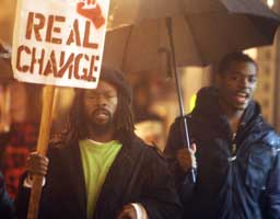 High school and college students were part of the organizing cores in many areas, along with families of people killed by law enforcement. Homeless activists, prisoners’ rights groups, neighborhood people, along with revolutionaries and reverends and many others, came together in nearly two dozen cities and towns across the U.S. and in Montreal, to say, No More! Many, many people wore black that day. People on the sidelines of the marches shouted their encouragement. People stepped up to the mike to tell their stories. In several cities, press coverage reported the national scope of the activities. On the following day, October 23, there were actions across the country for Justice for Oscar Grant. San Francisco Bay Area ports were shut down by the ILWU (International Longshore and Warehouse Union). In Oakland, 1000 people attended the demonstration. In New York, people held a follow up strategy session to the October 22 protests, focusing on what is the cause of police brutality and what is it going to take to stop it. October 22, 2010, exposed and opposed the laws that criminalize a generation. In New York, the Stop and Frisk policies that mainly target Black and Latino youth were denounced, and plans for a neighborhood patrol were announced. At the United Nations Human Rights Council in Geneva, Switzerland, the October 22 Coalition, the African American Institute on Policy Studies and Planning, and the Ida B. Wells Media Institute submitted a position paper on “The Continuum of Domestic Repression in the U.S.,” stating that "Today, police still routinely make unfounded mass arrests and detentions to keep people off the streets and out of the eye of the media which tends to be accommodating." October 22, 2010, made these issues visible in the public spotlight and strengthened people’s ability to come together from many different backgrounds to fight. Below are some of the reports from local areas. Albuquerque, New Mexico About 70 protesters gathered outside the Albuquerque Police Department Headquarters, then headed to Robinson Park downtown for a vigil in memory of the twelve people fatally shot by Albuquerque police this year. The group walked down Central Avenue with their signs. Copwatch had video cameras in hand. Many in attendance were family members of police shooting victims. The protest was organized by Copwatch, Vecinos United and Albuquerque Answer Coalition. The brother of one of those victims, Andres Tellez spoke at the rally. Atlanta, Georgia In Atlanta about fifty people wore black and held signs in Woodruff Park, a busy downtown park that serves as a networking area for many of the city's homeless (many of them victims of police violence). The demonstration consisted of many different organizations: FTP Movement, CopWatch, Progressive Student Alliance at Georgia State, the Revolutionary Communist Party, and Malcolm X Grassroots Movement. The event had a Speak Out that gave voice to many victims of police brutality. Victims of police brutality shared their stories to hundreds of passersby. The demonstration ended in a short march up to the MARTA train station, people cheered as demonstrators chanted No Justice, No Peace, No Racist Police Chicago, Illinois Students, teachers and staff from an alternative high school came carrying signs they had created in class. Families of people killed by police, revolutionaries, religious activists, and people from Chicago’s Southside gathered for a rally that started with a roll call of stolen lives [people killed by police] followed by the recognition of Stolen Lives families in attendance. Students read poetry and speeches were given. About 75 to 100 people held an enthusiastic march that surged down State Street and back up Michigan Avenue — drums pounding and chants echoing through the canyons of the Chicago Loop in the midst of lunch rush hour. Led by a banner with the pictures of 22 people killed by the Chicago police, the mainly young and predominantly African American march received a strong response from people along the route. Cleveland, Ohio As people assembled in downtown Cleveland, black armbands were passed out along with the October 22 Calls. Then parents who lost young Black men spoke about the horror they feel. Tina Bronaugh, mother of two high school students who were viciously beaten and charged for protesting cuts and layoffs, spoke passionately about that case. Sixty-five people, mostly youth, came out for a march to the “Justice Center,” where prisoners waved from the windows when they heard the chanting. Then the march went through an entertainment district where black people have been repeatedly profiled and then harassed and arrested. Along the way, Killer Cops in Every Town, We Won't Forget, We Won't Back Down! was shouted loudly for everyone to hear. Greensboro, North Carolina About 2:30am on Friday, October 22, Cpl. M.W. Chandler shot and killed 28-year old Marques Ra’Shawn Burnett while responding to a disturbance call. Scott Trent, an organizer for October 22 Coalition, spoke at the rally: “We’re very sad that they have to join this growing group of people that are going through exactly the same thing that Oscar Grant’s family went through — that all these people went through — because these cops know that they can get away with murder every single time.” The protest began at the new Guilford County jail site at Edgeworth and Washington streets. Neon-colored picket signs with No More Stolen Lives and Stop Police Brutality bounced up and down with the syncopated rhythms of a drum corps at the jail before the protesters moved to Freeman Mill Square. Jessie Barber wore a poster around her neck with the faces of young men who were killed by officers, including her 22-year-old son Gil, who was shot by a Guilford County Sheriff’s deputy in 2001. She called police use of lethal force an epidemic and encouraged the community to become more involved in stopping it. Los Angeles, Calif