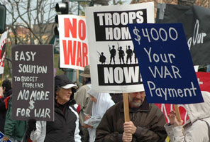 Across the U.S. on March 19 demonstrations and other actions demanded an immediate end to all U.S. wars and occupations in Iraq, Afghanistan, Pakistan and now the aggression against Libya, which started that very day. March 19 marks the eighth anniversary of the U.S.-led invasion of Iraq. The various demonstrations included contingents of anti-war veterans, Palestinians and other Arabs, unions and many youth. Signs, chants and various speakers denounced U.S. efforts to claim aggression against Libya was for humanitarian purposes. Drawing on the experience with Iraq and Afghanistan, they brought out that U.S. wars and aggression serve empire, serve the U.S. drive for world domination and control of natural and human resources and strategic areas. Everywhere, signs demanding U.S. Troops Home Now were evident, indicating the firm stand that U.S. intervention does not serve the peoples. Demonstrators also denounced claims at the federal and state levels that “there is no money” to justify massive anti-social attacks on education, healthcare and pensions. The people demanded instead an end to war funding as an immediate source of trillions of dollars and a contribution toward world peace. The actions were also used to mobilize for national actions planned for April 9 in Washington, DC and San Francisco. Washington, DC