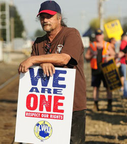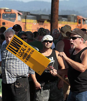 The workers at Longview overwhelmed the new grain terminal of monopoly cartel EGT and entered the premises demanding their right to a contract and the removal of scab labor. They expressed their frustration with the refusal of the EGT monopoly to abide by an agreement with the Longview Port that only union longshore workers of the ILWU work the port, and with the company’s unwillingness to enter into any discussion with the ILWU. The workers have continued their struggle with demonstrations, more sit-downs on the port railroad tracks and organizing to gain broad support for their fight. Workers from the Teamsters, American Federation of State, County and Municipal Employees, United Food and Commercial Workers, Inland Boatmen’s Union, and Painters union have participated in demonstrations. More than 200 local businesses display signs in their windows expressing their support for ILWU Local 21 and their fight for rights. Many international unions have also organized actions and sent messages. The Longview workers have also faced brutal state organized violence and repression, with hundreds of arrests. West Coast dockworkers stopped all machinery and equipment for fifteen minutes September 26 denouncing the arrest of ILWU International President Bob McEllrath for participating in actions. They stood in silence and anger against the police brutality and repression of their struggle. McEllrath followed in the footsteps of 200 ILWU Local 21 members — all with arrest warrants for participating in the struggle — who attempted to turn themselves in at the Cowlitz County Hall of Justice on September 16. Their offer was ignored and instead police ambushed workers and their families, using multiple-squad cars in the following days. Police have also openly spied on the union hall, followed and harassed union members and arrested and jailed people for minor misdemeanor offenses. Now EGT has hired a private army, Special Response Corporation, in a further attempt to intimidate the workers and block the just struggle for their rights. The workers are rejecting all these efforts and advancing their fight. Their experience is a significant example in current efforts by the workers to defend the progressive trend of history for human-centered societies where the rights of all are guaranteed. September 7-8 Port Closures Before sunrise in Longview, 500 workers overwhelmed the gates of the EGT grain terminal, demanding their right to a contract and the removal of scab labor. Workers left the premises after several hours to return to their union hall. Instead of abiding by the Longview Port agreement, EGT, an international cartel owned by the St. Louis-based food monopoly Bunge, Itochu International of Japan and STX Pan Ocean of South Korea, has hired scab mercenaries from Portland to work the new grain terminal at wages, benefits, pensions and working conditions below the Pacific Northwest standard and outside the unity of the ILWU. EGT bragged that it would “save” over a million dollars a year on the 50 workers needed to run the new grain terminal. If this is allowed to pass, Pacific Northwest longshore workers say this would break the unity of workers necessary to maintain their collective port agreements and their standard of living established over decades of struggle. Longshore workers emphasize that the ILWU was born in the Northwest in the heroic struggles of 1934 against state and company organized violence and intimidation. The workers’ victory marked a new beginning and broke new ground in defense of the rights of all. If the unity of longshore workers is breached for whatever reason, the even more aggressive monopolies and state of today will tear apart the existing living and working standards and destroy their trade union. Meanwhile upstream on the Columbia River, 400 longshore workers and their supporters in Vancouver (Wash.) occupied the railway line to stop the first grain train heading for the Longview Port. They were met with state-organized violence from a large contingent of heavily armed police sent to criminalize the workers, who were defending their rights, and to inflict injuries on them with baton charges, tear gas and pepper-spray and to arrest dozens including ILWU president Bob McEllrath. Reports say that longshore workers stood their ground demanding McEllrath’s release and the recognition of their rights. His release came after negotiations during which the demonstrators were told “next time the authorities would bring in the army.”