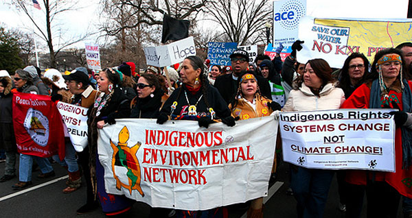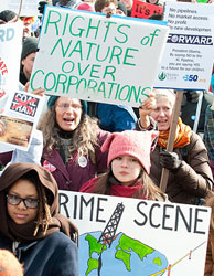 On February 17 more than 40,000 people from across the country demonstrated in Washington, DC, demanding that Obama take action to protect the environment and rights of the peoples. Indigenous peoples, including many from Canada, farmers, energy workers, environmental activists, students, scientists, and many others stood together to demand that the serious problems of climate change be taken up. As one of the signs put it: System Change not Climate Change! Participants recognized that the existing system where monopoly right dictates and the rights and demands of the public are denied must change to protect the human and natural environment. They called on Obama to have his deeds match his words: “For the sake of our children and our future, we must do more to combat climate change,” (Obama State of the Union). And they used the action to strengthen their continuing work together.