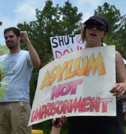 At the same time, in July, Obama did act against the rights of migrant children, demanding that the thousands of children be fast-tracked through the immigration courts and deported. The large majority of the children are refugees, fearing for their lives and attempting to escape violence and persecution imposed on their countries by the U.S. “war on drugs,” and its backing of reactionary governments, such as that installed by the U.S. in Honduras. Rather than treating the children as refugees and having them dealt with by the Department of Health and Human Services (HHS) — one of the only departments still without a major police force — Obama is having Immigration and Customs Enforcement (ICE), one of the largest policing agencies, and the Border Patrol deal with the children. HHS, unlike ICE, has social workers, churches and other non-police forces interview and care for the children. ICE and Border Patrol have armed agents detain and interview them, often with no interpreters. The government stand is one of criminalizing the children and “welcoming” them into the militarized U.S. culture that now pervades the border and its policing agencies. Contrary to U.S. and international law, the children are being detained in military and other prison-style detention camps. International law says that children “should in principle not be detained at all,” according to the United Nations High Commissioner for Refugees (UNHCR). Detention, if used, should only be a “measure of last resort” for the “shortest appropriate period of time,” with an overall “ethic of care.” U.S. law also calls for detention to be a “last resort.” Instead it is the first action taken. An indication that this government crime will continue is the fact that Immigration and Customs Enforcement (ICE) is currently negotiating with private prison monopoly Corrections Corporation of America (CCA) to open a large family detention center in Texas. CCA is notorious for securing profits while imposing horrendous conditions for prisoners and immigrants. As a result of mass protests and court actions, in 2009 CCA was forced to shut down the T. Don Hutto family detention center it formerly operated, also in Texas. Even so, the government is again unjustly detaining children and families and making this injustice a source of guaranteed profits for the CCA private monopoly. Wholesale Attack on Due Process Rights