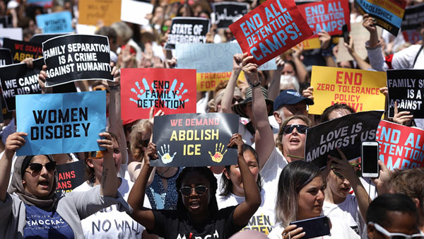 Hundreds of thousands of people from all walks of life joined demonstrations all across the country on June 30, affirming the human rights of children, refugees and immigrants and rejecting the government’s brutal and wholesale attacks on them. Everywhere the stand was clear: Separation of Families is a Crime Against Humanity; Separation is Child Abuse; Children Are Not Criminals; No Human Being is Illegal; Asylum is a Right; Reunite Families NOW! Stop Government Terrorizing of Families; Detain Trump, Not Children; Caging Children is a Crime; No Concentration Camps; End Detention. Many families participated with their young children, who often made the signs. From Juneau, Alaska to Orlando, Florida, people in sizeable united actions in cities and towns large and small took their stand. More than 35,000 marched in DC, 30,000 in New York City, 60,000 in Chicago and 70,000 in Los Angeles, with more than 750 actions in all. More than 180 organizations participated in mobilization. Demonstrations also took place across Canada and in many other countries worldwide.