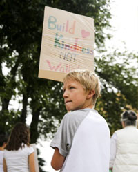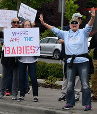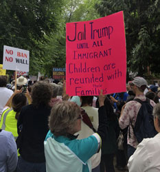 Not Our President, Not Our America, Not Our Democracy Another feature of the many actions was the stand that basically there are two Americas contending: the one represented by the rulers and their representative Trump, and that of the people represented by their many organized actions of all kinds, like demonstrations, meetings, petitions, and more. Many of the signs in different places reflected this battle: This is Not Who We Are or Should Be;Chaining Babies Not My America; We Are What We Do, So Which Are We (with two pictures, one jailing children and one welcoming refugees). Since the Trump election, which was and has been broadly opposed by the large majority, the view that the country is headed in the wrong direction and one that is harmful to the people here and abroad, has grown. As many now put it: Not Our President, Not Our America, Not Our Democracy.