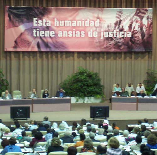 The Havana Conference proceedings began with the screening of a documentary, a vivid testimony to terrorist attacks in Cuba and other countries, such as the bombing of the Cubana passenger plane in October 1976 and the consequences of Operation Condor, organized by the CIA in Latin America's Southern Cone region to suppress liberation movements. Panels were held on the topic of terrorism, including the Miami connection, Plan Condor, the Venezuela connection, the role of the media and the systematic manner in which U.S. imperialism utilized fascist groups such as Patria y Libertad in Chile and CORU in Miami and tactics of terror to wipe out its adversaries. Presentations were made by researchers, political personalities and victims of U.S. terrorism, giving a historical, detailed and assiduously documented overview of the period from the end of the Second World War to the present. Vice-President of the Bolivarian Republic of Venezuela José Rangel presented crucial insights into U.S. tactics and methods during the April 2002 coup against President Hugo Chavez and the subsequent destabilization campaign. He also impressed upon everyone the urgency of creating a united front against fascism when he pointed out that Chavez's life is in serious danger. He said this not from the standpoint of calling for sympathy but to express the urgency and significance of the all-round battle to stop U.S. state terrorism. A main emphasis of discussion was the role of the Cuban mafia in Miami and its consistent presence in terrorist acts in Latin America. The examples of the terrorist attacks organized against Cuba by the CIA and FBI, carried out by the Cuban terrorists based in Miami, clearly established that the Cuban people have faced U.S. state terrorism for more 40 years. It was shown that the Miami mafia has carried out terrorist attacks against progressive forces all over Latin America, in Europe, Canada and the United States. At the conference, the links between the Miami mafia and the drug-trafficking cartels in Colombia used to launder money were also revealed. The role of U.S. government security agencies in this was brought out. The role of former U.S. presidents Ronald Reagan and George Bush Sr. in working to unite the various factions of the Cuban mafia showed that without the backing of the U.S. state these terrorists would have no future. President of the Cuban National Assembly Ricardo Alarcón presented damning evidence showing that the CIA and the FBI were both aware that Posada Carriles and Orlando Bosch, the head of the Cuban mafia, were planning to blow up a Cubana airliner in 1976 and did not notify Cuban authorities or any other relevant parties. Furthermore, after the bombing of the airliner in which 73 passengers were killed, the U.S. government did not state that it had knowledge of who was responsible. Instead it organized to ensure the escape of Bosch and Posada Carriles. The evidence also proved that the U.S. government knew that these gangsters had organized the assassination of Orlando Lettelier, the Vice-President of Chile under Salvador Allende, and his assistant in New York in a car bombing. President Castro drew the appropriate conclusion that the aim of assassinating Lettelier was to ensure that the Chilean progressive forces could not regroup after the U.S.-organized coup against Allende, September 11, 1973, which brought the the brutal dictatorship of Augusto Pinochet to power. In the course of sharing the overall experience of Plan Condor, various presenters including well-known journalists and activists from Latin America, gave testimony on the crimes they had witnessed and been subjected to. A young Chilean recounted the kidnapping and murder of his father and the torture he and his sister were subjected to as children at the hands of the Chilean police. He, like all others who presented their testimony, ended by calling for justice not revenge and affirmed that the generation that grew up with the dictatorships of the 1970s and 1980s will build socialism together. Representatives of the Mothers of the Plaza de Mayo from Argentina were also present. These courageous women, whose children and grandchildren were disappeared under Plan Condor, have formed groups to demand justice for the disappearances. Hebe de Bonafini gave one of the most militant and spirited interventions of the conference. She recounted the experience of many of the mothers who had taken up revolutionary politics in the course of their struggle to end the ability of the state to act with impunity. She, like many, thanked Fidel Castro and the entire Cuban people for their principled and constant stand in favour of humanity. She ended by saying that the Mothers of the Plaza de Mayo have learned from the Cuban Revolution the importance of education and self-reliance. She explained that the mothers have established their own printing press and are building educational institutions in order to develop the revolutionary spirit of their members and the next generation of Argentineans. Her intervention was met with a standing ovation and the joy of all that these mothers represent an example of the role consciousness and organization play in releasing the initiative of the people to build another world. The atmosphere was truly electric as the collective experience of humanity in this period of history came together to find a way forward. Many pointed out that this was their first participation in such a convergence. The energy released by the gathering was calling on everyone to go further. During lunches and break sessions delegates met to further discuss and work out how to continue the discussion amongst the broad masses of the people.