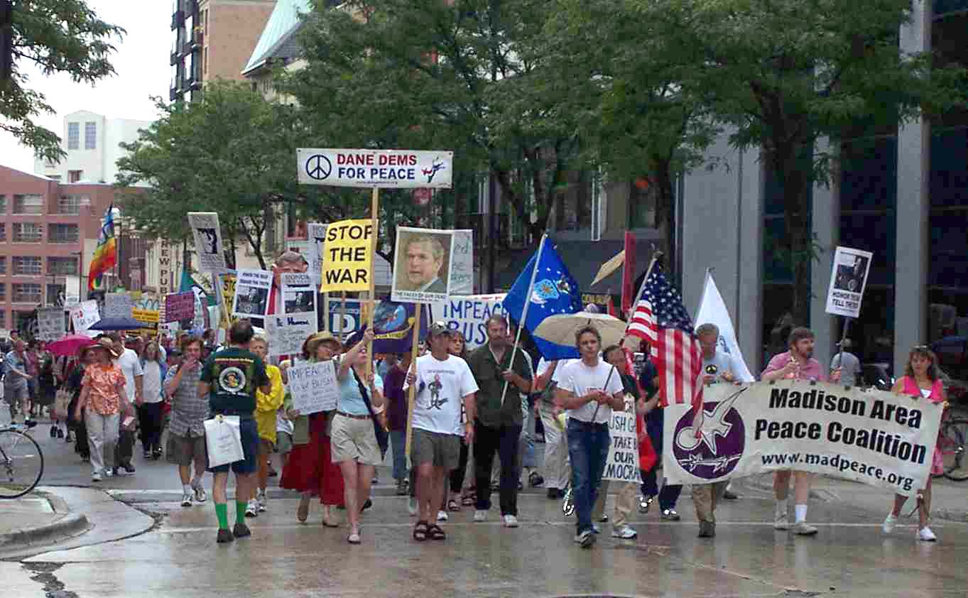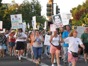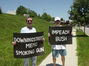 Actions Nationwide Demand: Impeach Bush! TOP: Madison, WI. BOTTOM: Wyomissing, PA; Sacramento, CA On Saturday, July 23, from Bellingham, Washington to Pompano, Florida, from Wailuku, Hawaii, to Boothbay, Maine, from San Diego, California, to Birmingham, Alabama, from Houston, Texas to Detroit, Michigan, thousands of people from all walks of life organized over 300 actions to demand that the crimes of Bush and his administration be punished. The main slogan raised by people from coast to coast was “Impeach Bush.” The creative and undaunted energy of Americans to oppose the crimes of the U.S. government were shown in the breadth and variety of events organized. These included teach-ins, demonstrations at busy intersections and monopoly media offices, house meetings, discussion groups on campuses and in churches, leafleting campaigns and more, all with the spirit of bringing everyone together to investigate the crimes of Bush and demand his impeachment. Numerous organizations, such as the women’s group Code Pink, anti-imperialist globalization activists of Global Exchange, military families from Gold Star Families for Peace and Military Families Speak Out, coalitions like AfterDowningStreet.org, and many many more groups and individuals joined together to target Bush, not only for his lies about the war, but for the crimes of the war itself. Speakers from the military families and Iraq Veterans Against the War, for example, addressed the war crimes being carried out in Iraq and the just stand of soldiers who are refusing to serve and carry out such crimes. Grandmothers and youth, workers and lawyers, activists and newcomers to the movement all across the country, south and west, north and east, joined in. And whether events were large or small, whenever the crowd was asked if Bush should be impeached, they shouted back, “Yes! Do it now! Impeach Bush!” In place after place, the crowd called for an end to the war in Iraq. They also demanded that politicians take action and do it now. As one person said, “Why is it so hard to get a Democrat from a solidly Democratic district to introduce articles of impeachment? What are they waiting for?” Others emphasized that Congressional intelligence committees can hold hearings, including minority hearings by Democrats, and what are they waiting for! People also repeatedly made clear that they are not waiting on Democrats or anyone else but instead are organizing broadly to mobilize all concerned in the effort to Impeach Bush! The level of enthusiasm and organization developing was seen not only in the actions themselves but also in the streams of reports that poured in July 23, with participants sharing information and views on the internet, in conference calls and through videos. The teach-in in Los Angeles saw an overflow crowd of more than 1,000, in Oakland 500, in Seattle more than 300, in Detroit another 300, in Houston 250, and thousands more in smaller meetings and demonstrations in cities and towns. As one participant in the Louisville, Kentucky demonstration put it, “We had an 82 year old grandmother and babies in strollers,” all standing against the war and calling for impeachment. Raleigh, North Carolina brought people together for lively discussion, with participants reporting “We’re excited about building on this momentum and adding even more voices to this movement.” Everywhere participants commented on their commitment made to carry forward on the basis of their own efforts. July 23 was chosen as the date for the actions to mark the anniversary of the Downing Street meeting and the memo based on it. The Downing Street Memo was among a series of documents detailing the run-up to the March 2003 invasion of Iraq. The papers, which summarized meetings between U.S. and British officials in 2002, show that the White House had long been determined to invade Iraq and that it doctored intelligence to try and justify aggression against Iraq. Organizers bring out the Memo is compelling evidence that Bush lied about the Iraq invasion, lied to Congress, lied to the people, and set the precedent of taking pre-emptive action when no threat of any kind existed. Also involved in the actions were members of Congress, including John Conyers of Detroit, Michigan, Barbara Lee of Oakland, California, Jim McDermott of Seattle, Washington and Maxine Waters of Inglewood (Los Angeles) California. Constitutional attorney John Bonifaz, Co-Founder of the After Downing Street Coalition spoke in Northampton, Massachusetts. Democrats.com president Bob Fertik, Co-Founder of the After Downing Street Coalition, moderated a forum in New York City. All of the actions made clear that the will of the American people is to impeach Bush now and that this struggle is building in strength and will go forward.