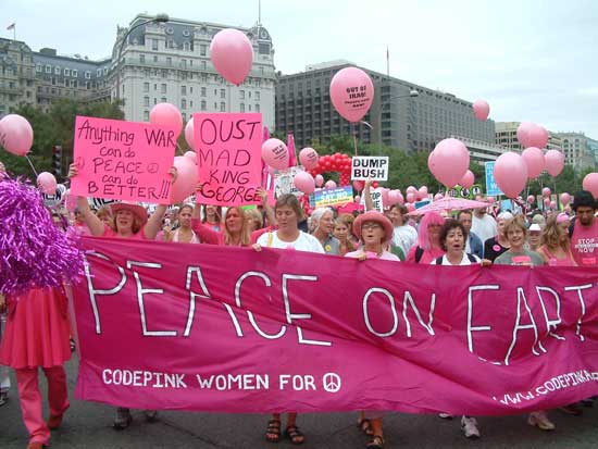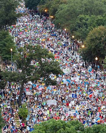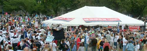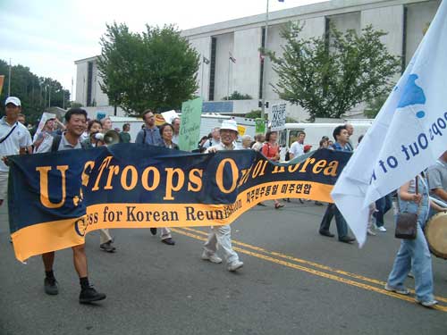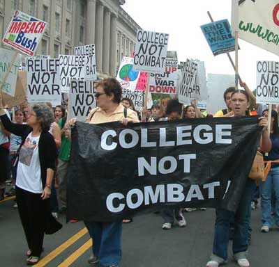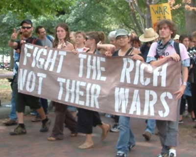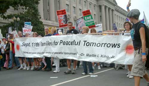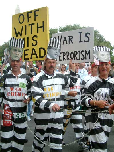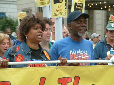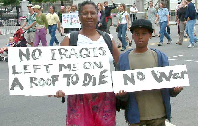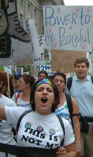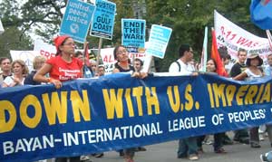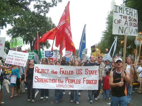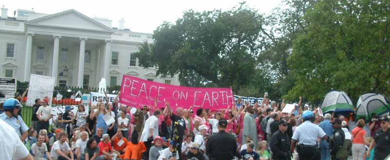 End the War Now! We Are Deciding the Future On September 24th people around the world stood shoulder to shoulder against war and reaction, showing that another world is possible and that we the people are creating it! In the U.S., one of the most energetic and diverse gatherings of organizations and people took place in the massive Washington D.C. action. Large contingents from women's groups and veterans, military families and political organizations, unions and peace groups, youth and students against military recruitment and clergy against war, Koreans, Arabs, Venezuelans, Latinos, African Americans, mothers and daughters, seniors and many many people demonstrating for the first time all took their stand to end the war now. The energy and determination was such that despite having to wait long periods as the front of the march emptied into the streets, and then wait again as more and more people arrived to join in, the chanting, defiance and spirit of resistance was unstoppable. "Troops Out Now! Out of Iraq! Out of the Philippines! Out of Korea! Out of Colombia! Out of Puerto Rico! Out of Afghanistan! Out of Louisiana! Troops Out Now! Jail to the Chief! Terrorist, Murderer, Liar, Coward! Impeach Bush! College Not Combat! Power to the Peaceful! People poured into D.C. despite numerous train delays and difficulty getting enough buses. In groups large and small people arrived by vans and cars, buses, planes and trains, from Washington State, Utah, Idaho, Montana, Arizona, Oklahoma, Texas, Kentucky, North Carolina, Florida, Minnesota, Wisconsin, Illinois, Ohio, Michigan, New York, Pennsylvania, Vermont, Maine and elsewhere. In creative ways, using signs, face paint, masks, costumes and more the people’s forces stood firm for rights and with full conviction expressed their anger against the war, torture, attacks on social programs, against military recruitment, the government's criminal disaster in New Orleans and against efforts to establish military rule here in the country. Signs reading “Bush: Fascist Gun in the West,” “Relief Not War,” “Failure Abroad and at Home” “Lead by Obeying the People” “Strengthen the People’s Forces,” gave expression to the drive of the people to block U.S. reaction and advance solutions of their own. What stood out most strongly was the determination to step up organized efforts and the energy of the united organized forces present to persist in the fight for change. One could feel the strength of a common vision, of a united public opinion that favored all the peoples and stood resolute against war and reaction. As one the estimated 300,000 demonstrators made clear that they are a force to be reckoned with, a force taking matters into their own hands and firmly committed to winning a bright future for all humanity. White House Sit-in On Sunday, many of the groups from Saturday’s march networked and discussed plans for on-going work. On Monday, several thousand people again rallied at the White House. Hundreds were also prepared to get arrested as part of the fight to end the war now and hold Bush accountable for his war crimes. U.S. Park police were present with a SWAT team, those on horseback, and numerous others The action began at the Ellipse, behind the White House, with protesters dividing into two groups and marching up 15th and 17th Avenues to the front of the White House. After a brief rally in Lafayette Park, all those prepared to get arrested marched together to the sidewalk in front of the White House. They began tying banners and signs with the names of dead Iraqis and Americans to the White House fence, a minor offense. Numerous groups participated, including Clergy and Laity Concerned, Code Pink, Military Families Speak Out, Gold Star Families for Peace and numerous other affinity groups. As those standing on Pennsylvania Avenue chanted support, those on the sidewalk sat down in front of the White House. Police then began arresting participants, including Cindy Sheehan and many other women. The entire crowd began chanting Arrest Bush! Arrest Bush! Jail to the Chief! Bush is a War Criminal! More than 330 were arrested, with many planning to return for court dates as part of continued protests against the war. Dozens of people were also arrested at the Pentagon as they unfurled banners opposing U.S. aggression, saying War is Terrorism. Throughout the hot and humid day, protesters remained spirited, demanding End the War Now! Jail War Criminal Bush!