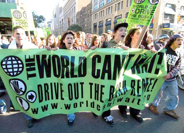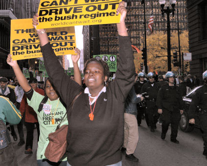 Resistance Mounts to Bush Reaction Across the country, Americans continue to show their determined and militant resistance to the Bush regime and its brutal and violent reaction all down the line. Following a summer with thousands of actions against war and occupation and for the rights of all in towns and cities in every state, the fall has also seen thousands of demonstrations, vigils, student walk-outs and more. Standing by their own experience and refusing to be intimidated by police and government officials, everywhere people are organizing themselves and building up their own independent forces, including independent media. Numerous websites are being developed to represent the resistance of the people. Many are now providing the means for reports, photos and comments from all those engaged in struggle for their rights. Various sites are also popularizing the actions of others, reflecting the growing drive for a united force in action together. The latest round of actions are also bringing to the fore the participation of the youth, especially from the high schools. The “Drive Out the Bush Regime” campaign saw students in high school after high school walk out of school and reject efforts to stop their participation in political activity. What has clearly emerged is that it is the necessity for the people to rely on themselves and step up their efforts to empower themselves, through building up their own organizations, their own media, their united actions to block all reaction. [TOP] Drive Out the Bush Regime!